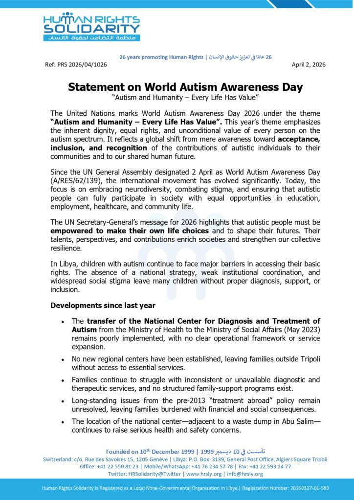 The theme “Every Life Has Value” is a reminder that autistic children and adults are not burdens—they are individuals with rights, dignity, and potential. Libya must commit to building a society that embraces neurodiversity and ensures equal opportunities for all.